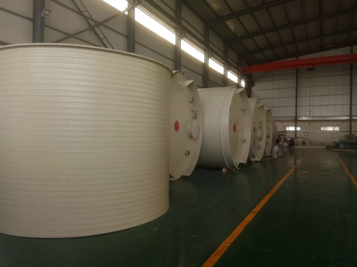 3、進入PP反應(yīng)釜應(yīng)穿潔凈膠鞋入內(nèi)察看玻璃襯里是否完好,法蘭及接管部位緊固,以免因局部受力過大,導(dǎo)致搪玻璃表面的損壞。