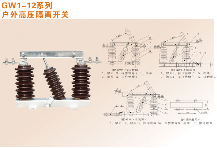 產品的電器和機械性能符合國家標準GB1985《交流高壓隔離開關和接地開關》的規定要求。其中型號包括:GW1-12G/200,GW1-12G/400,GW1-12G/630A,GW1-12G/1000,GW1-12G/1250。