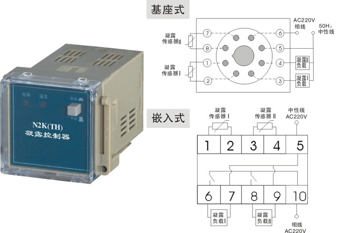 二路凝露控制,濕度過大或者將有凝露產(chǎn)生時(shí),啟動(dòng)負(fù)載,破壞產(chǎn)生凝露的條件。可同時(shí)對(duì)二個(gè)不同環(huán)境控制或者對(duì)同一個(gè)環(huán)境 實(shí)現(xiàn)雙重控制。